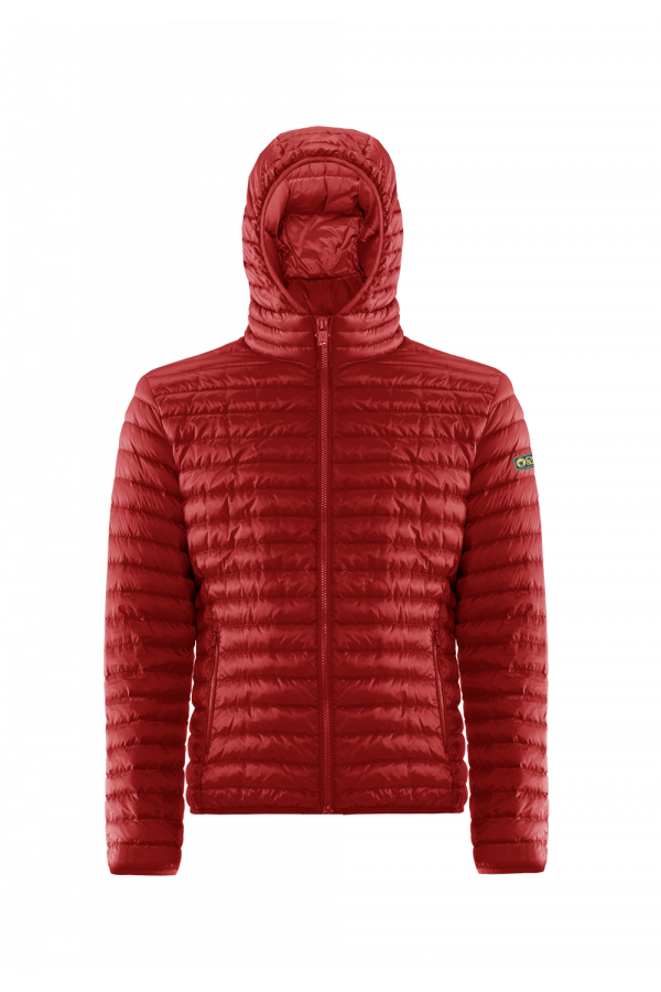 Giacca con cappuccio imbottita in vera piuma. Realizzata con un tessuto con finitura DWR, un resistente rivestimento idrorepellente che offre una maggiore protezione dall'acqua e dall'umidità. Vestibilità regolare, la giacca ha bordi in lycra su polsini cappuccio. Il contrasto interno e la chiusura a cerniera rendono questo indumento un capo piacevole e sportivo indossabile nelle città e nei campi all'aperto. - Disponibile nelle taglie: M